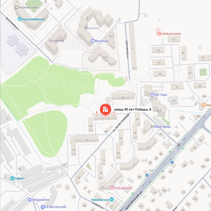 Адрес: Калининградская область, п. Васильково, Гурьевский, 40-лет Победы ул., 6, 53