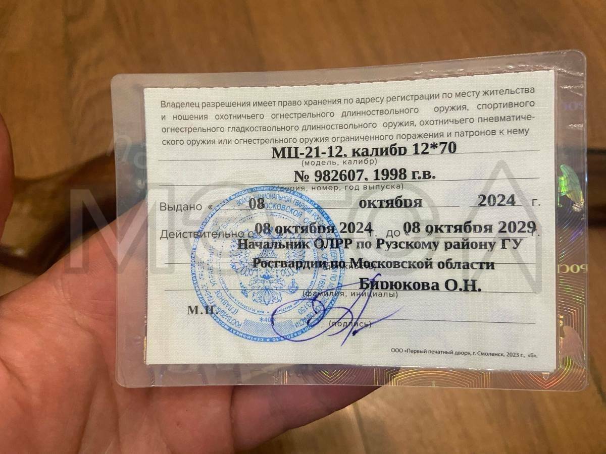 Ружье охотничье гладкоствольное МЦ-21-12, калибр 12*70, № 982607, 1998 г.в. Для покупки необходима лицензия на приобретение оружия.